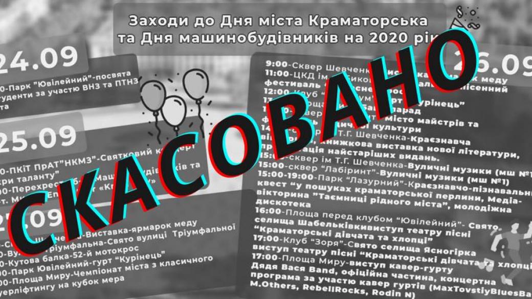 В Краматорске з-за стремительного распространения коронавирусной инфекции отменили празднование Дня города. Об этом сообщил городской голова Андрей Панков на своей странице в соцсети.