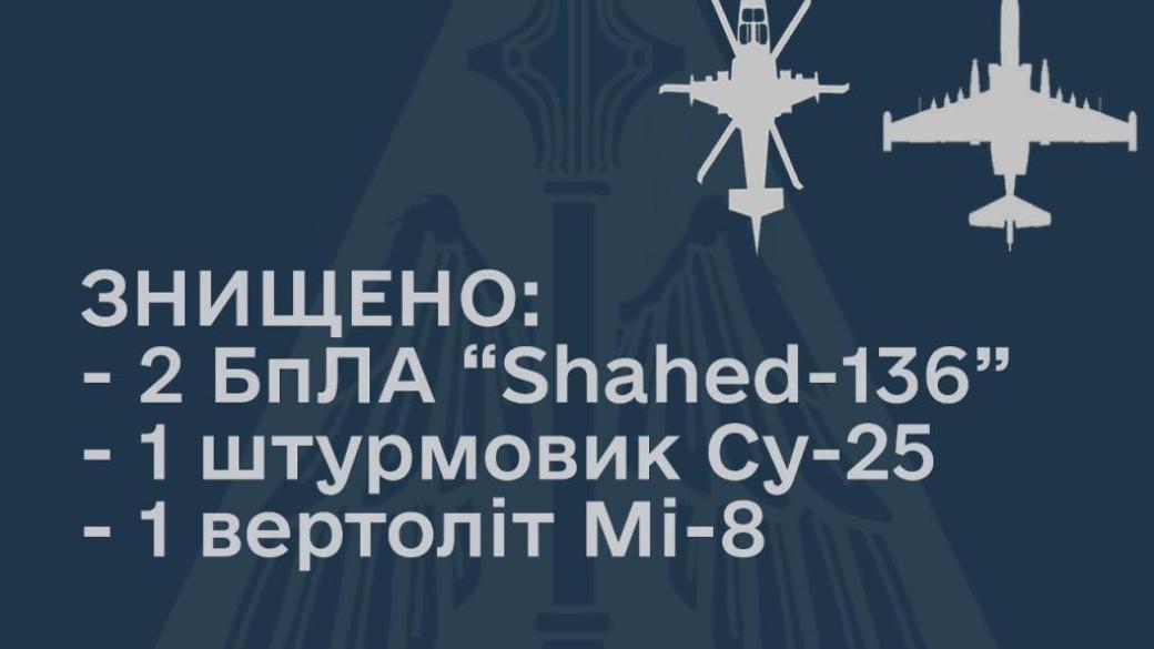 Также, за текущие сутки подразделениями противовоздушной обороны Воздушных Сил также сбиты два беспилотника-камикадзе «Shahed-136» в Николаевской и Одесской областях.