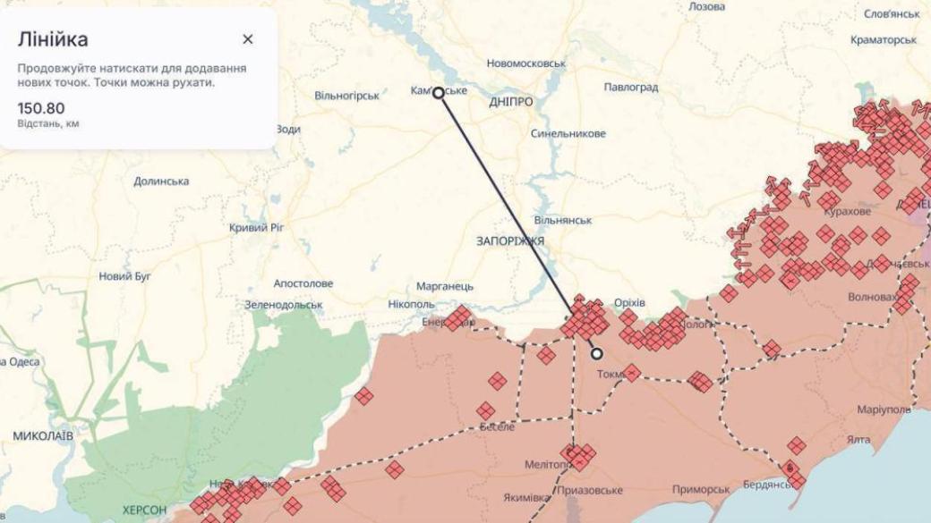 Известно, что расстояние от зоны пуска составляло около 150 км.