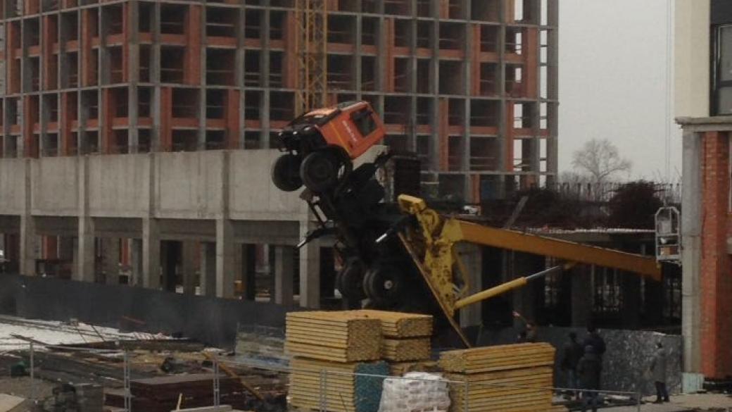 В соцсети сообщают, что подъемный кран внезапно рухнул вниз, подняв на огромную высоту автомобиль, на котором он был установлен. Сообщается, что погибли три строителя, на которых упала арматура и несколько работников пострадали.