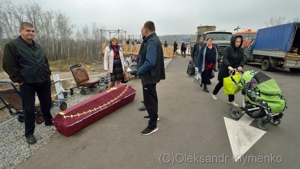 Автор публикации, пользователь Александр Клименко отмечает, что фото сделаны в ноябре 2019 года и назвал свой пост «Наши дни…». На снимках показаны все сложности пересечения пункта пропуска — огромные очереди, старики, везущие сумки — «кравчучки». Однако, самой жуткой является фото, где через КПП перемещают гроб с телом пожилого мужчины. В комментариях к публикации пользователи немногословно пишут «Страшно».
