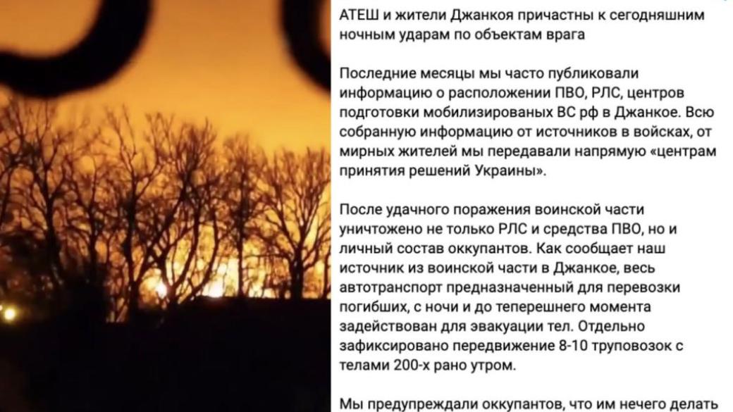 Партизаны движения АТЕШ, комментируя удары по оккупированному Джанкою, сообщили, что после удачного поражения российской воинской части уничтожено не только РЛС и средства ПВО, но и личный состав оккупантов.