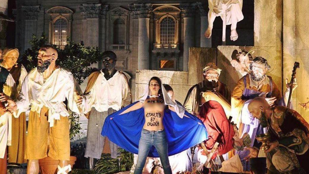 Активистки Femen рассказали провели акцию вечером перед католическим Рождеством на площади Святого Петра в Ватикане.