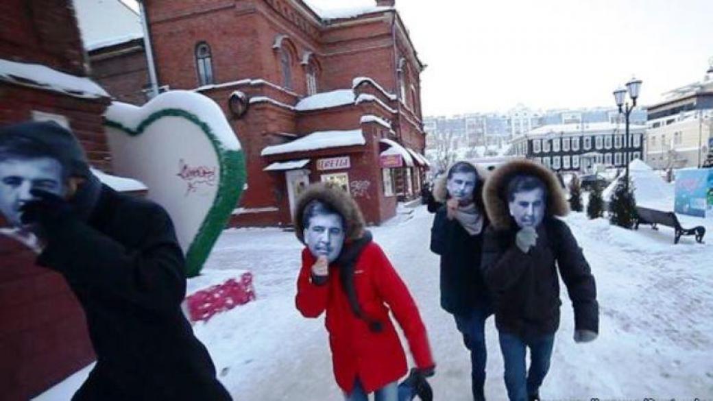Вчера в центре российского города Томска группа людей в масках экс- президента Грузии Михаила Саакашвили устроила акцию в ответ на высказывание российского президента Путина об Украине и Саакашвили.