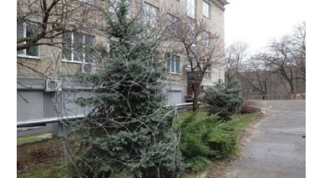 В российском городе Ростов-на-Дону, накануне Нового года елку обмотали колючей проволокой.