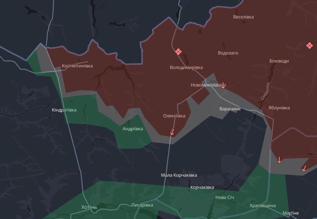 Оккупанты продвинулись в Сумской, Харьковской и Донецкой областях. Об этом сообщает мониторинговый ресурс DeepState.