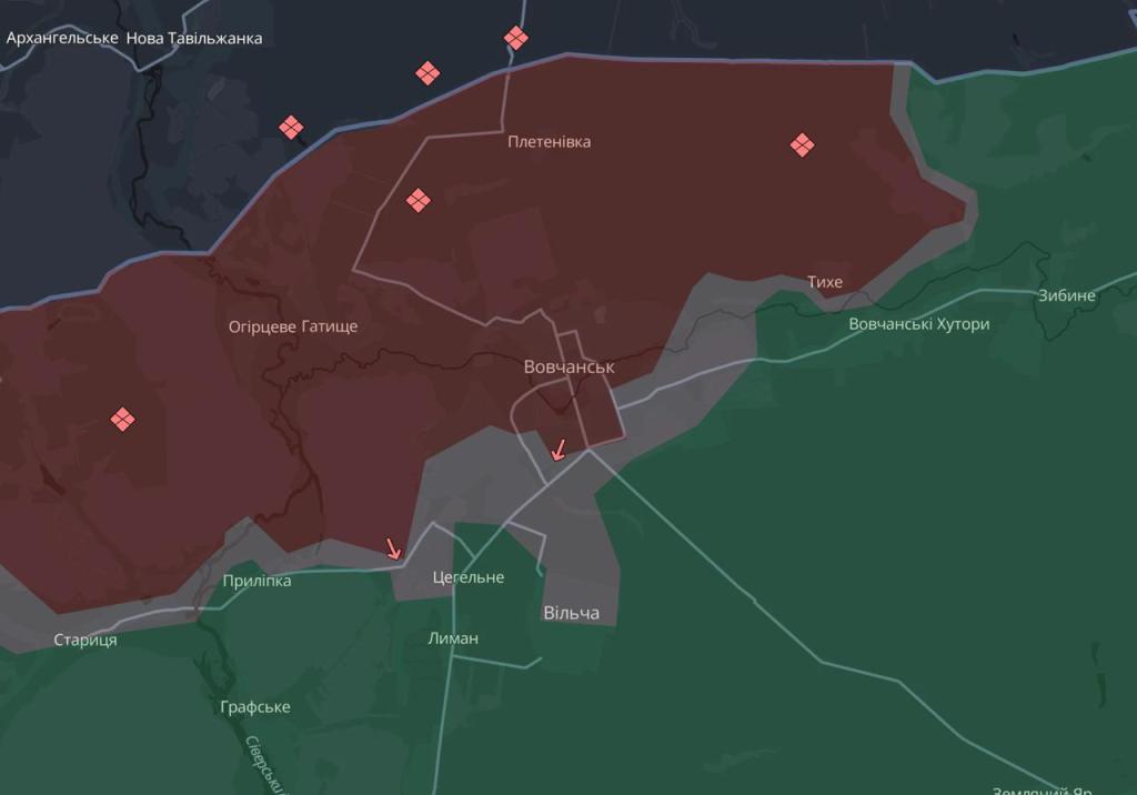 Аналитики зафиксировали продвижение россиян возле Кондратовки на Сумщине, в Волчанске Харьковской области и в Мирнограде на Донетчине.
