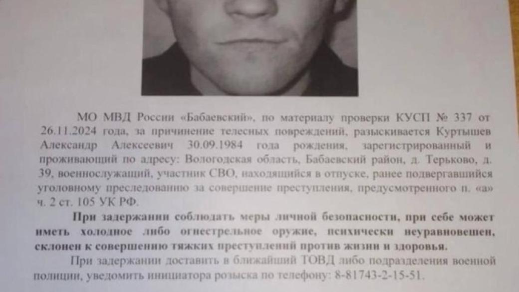 По данным ресурсов, россиянин психически неуравновешен, у него при себе у мужчины может быть холодное или гладкоствольное оружие. Известно, что до участия в так называемой "спецоперации" он сидел в колонии за двойное убийство. Полиция сообщила, что преступник «блокирован» на территории Бабаевского муниципального округа.