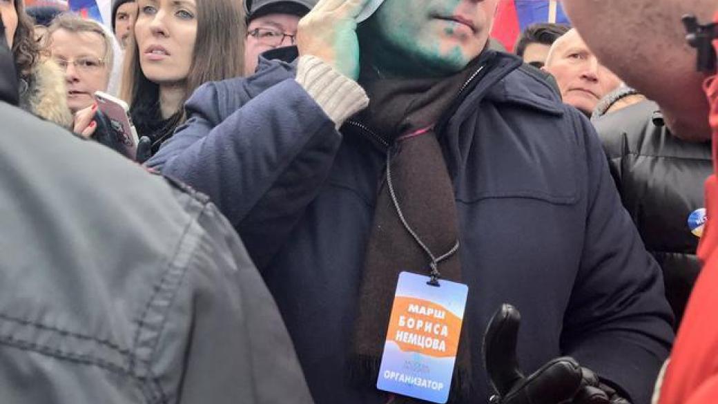 Сегодня в Москве во время «Марше памяти Бориса Немцова» неизвестный мужчина облил зеленкой председателя партии ПАРНАС Михаила Касьянова.
