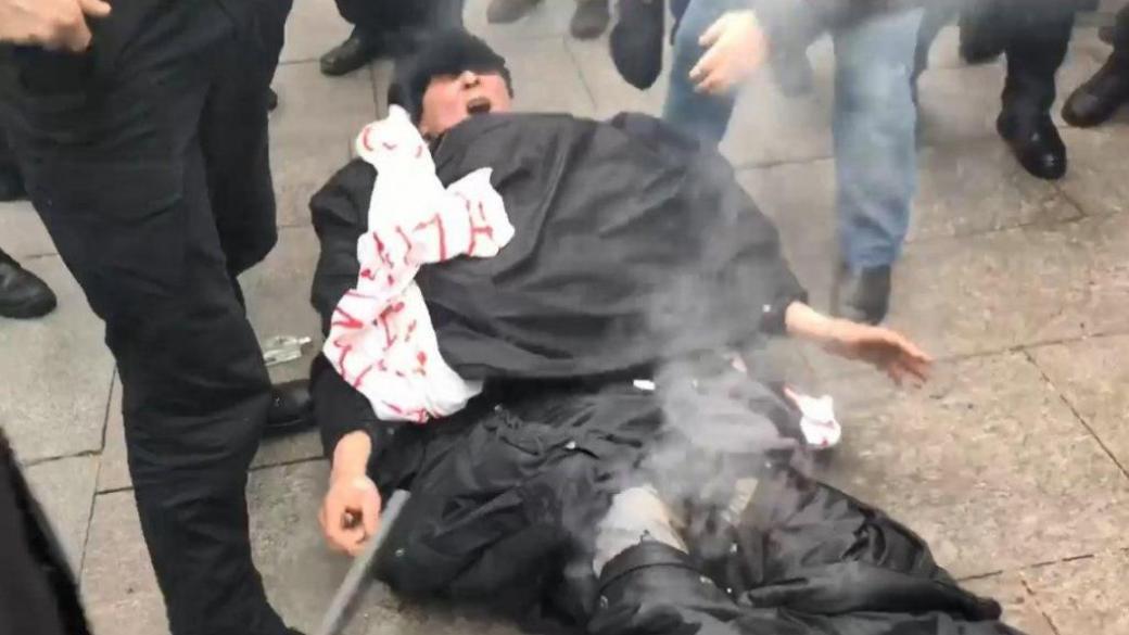 Отмечается, что сегодня возле ОПУ сегодня проходил митинг медиков. Внезапно из толпы выбежал мужчина, который горел. Людям удалось быстро потушить пламя. Медики оказали ему первую помощь.