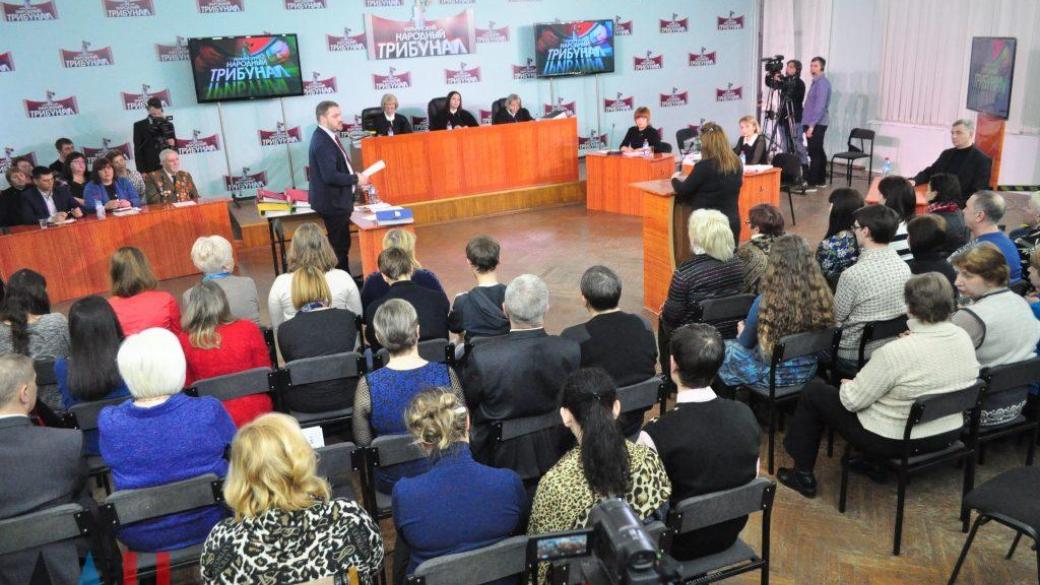 Так называемый «судья» заявил: «Обвинения в данном уголовном деле выдвинуты против восьми человек — это президент Украины Петр Порошенко, министр внутренних дел Арсен Аваков, секретарь совета национальной безопасности и обороны Александр Турчинов, премьер-министр Владимир Гройсман, начальник генерального штаба Виктор Муженко, министр обороны Степан Полторак, председатель Верховной рады Андрей Парубий, бывший премьер Арсений Яценюк. Обвиняемые на заседание не явились, но это не помешало Украинскому народному трибуналу начать первое заседание»