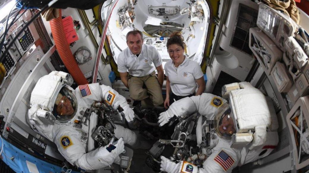 «Не обычная замена батареи и рутина рабочего дня. Фото подготовки Энн и Ника к их первому выходу в открытый космос! Спустя 7 часов, мы успешно модернизировали батареи, которые позволяют нам получать энергию, даже когда Земля затеняет нам Солнце», — сказано в публикации Кристины Кох.