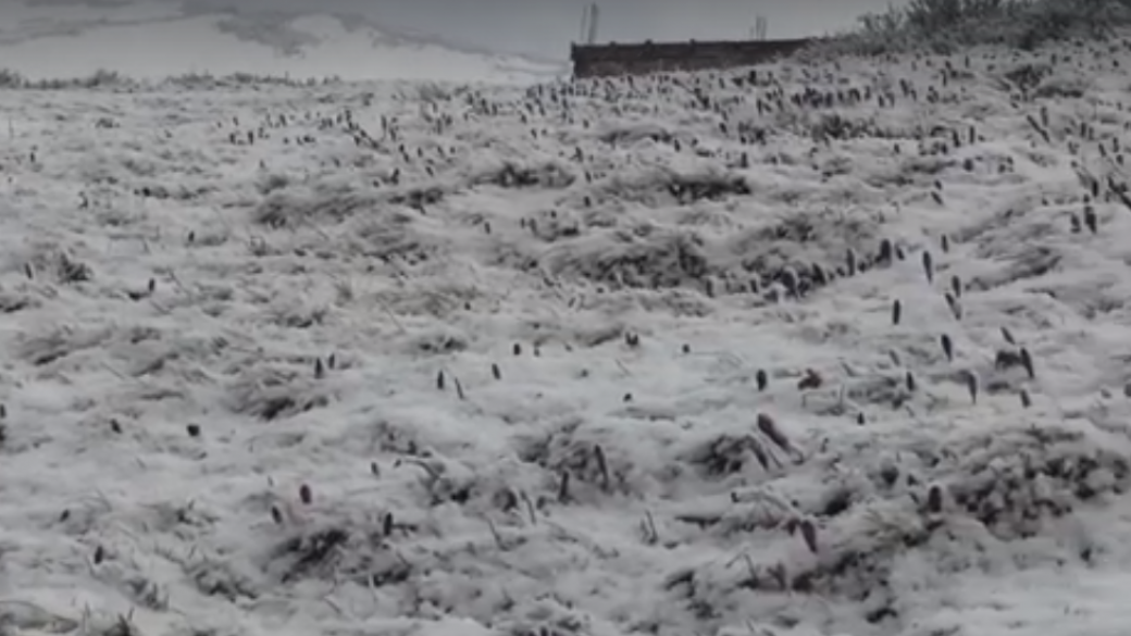 Люди сообщают, что все вокруг в снегу, и он продолжает сыпать дальше. На видео видны засыпанные снегом цветы и деревья, что очень редкое явление для конца апреля.