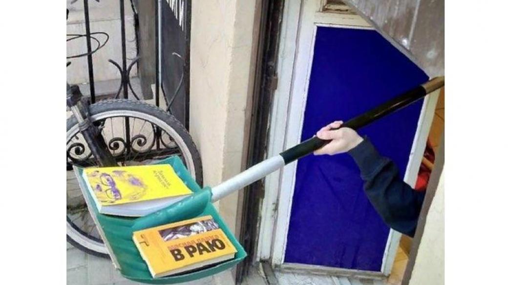 Магазинчик книг Фаренгейт 451 в Санкт-Петербурге нашел оригинальный способ продажи товара во время пандемии коронавируса, выдавая книги покупателем на лопате. Об этом Об этом порталу «Бумага» рассказал владелец Платон Романов.