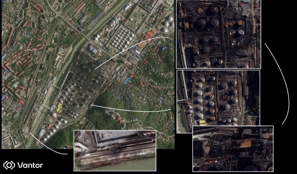 Согласно новым спутниковым снимкам от 26 апреля, значительная часть территории НПЗ выгорела.