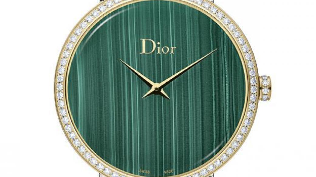 Модель La Mini D de Dior Satine диаметром 19 мм имеет циферблат из малахита или ляпис-лазури.
