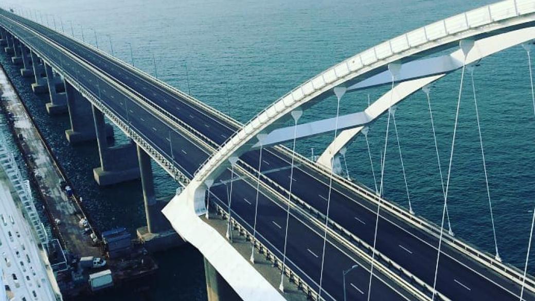 Автор продемонстрировала снимки абсолютно пустой автодороги на мосту и заявила, что благодарна гостям за их отсутствие.