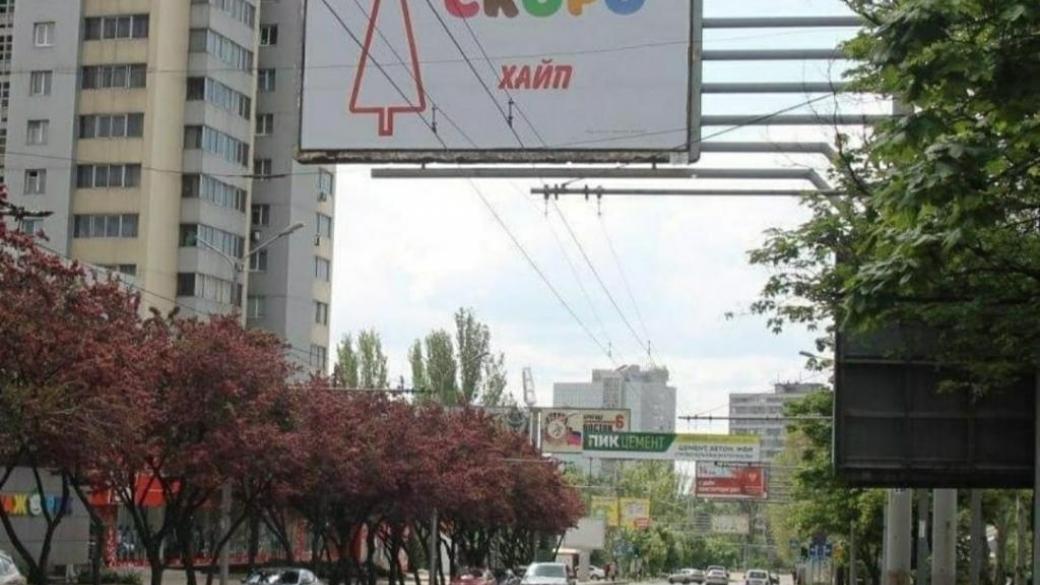 Они показали рекламный плакат без опознавательных знаков. На нем написано лишь «Скоро. Хайп». Также на билборде нарисована фигура, похожая на мороженое, — вероятно, речь идет о рекламе нового сорта мороженого.