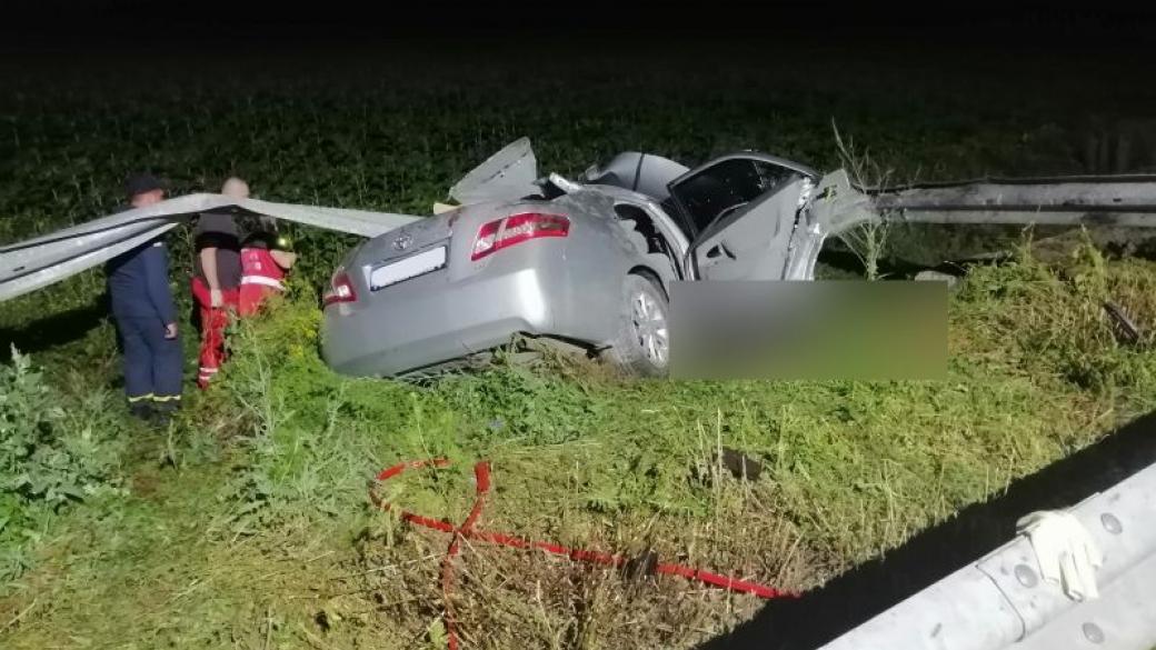 Установлено, что легковой автомобиль «Toyota Camry» на скорости сбил отбойник и выехал с проезжей части дороги.