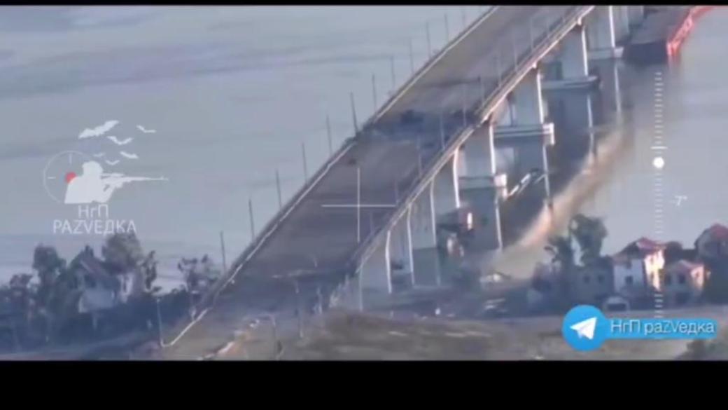 Паблик опубликовал видео, на котором якобы группа бойцов ВСУ на двух скоростных лодках пересекает Днепр, и укрываются под пролётом моста.