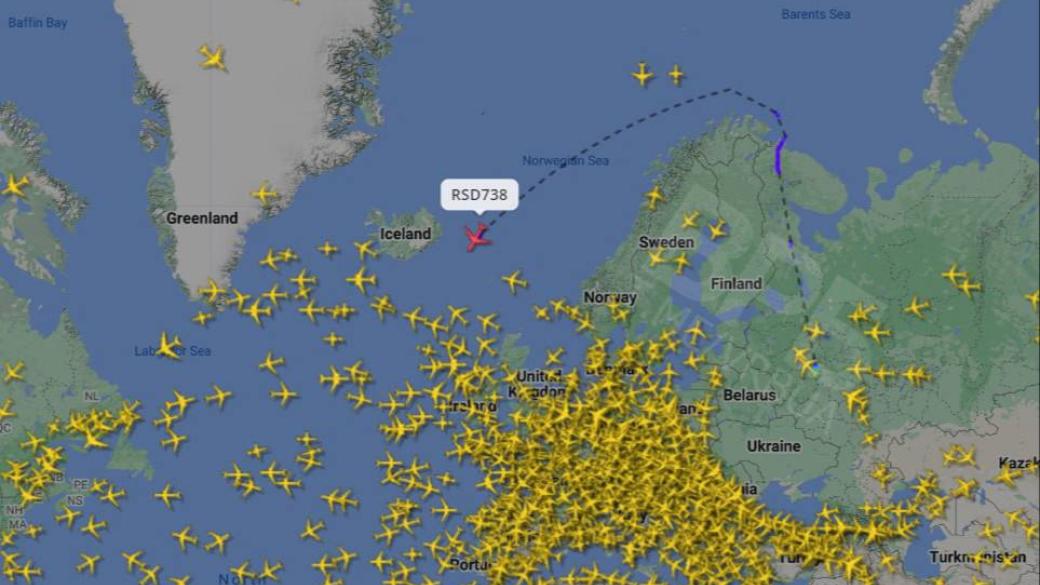 Борт специального лётного отряда Ил-96-300 летит из Москвы в Нью-Йорк.