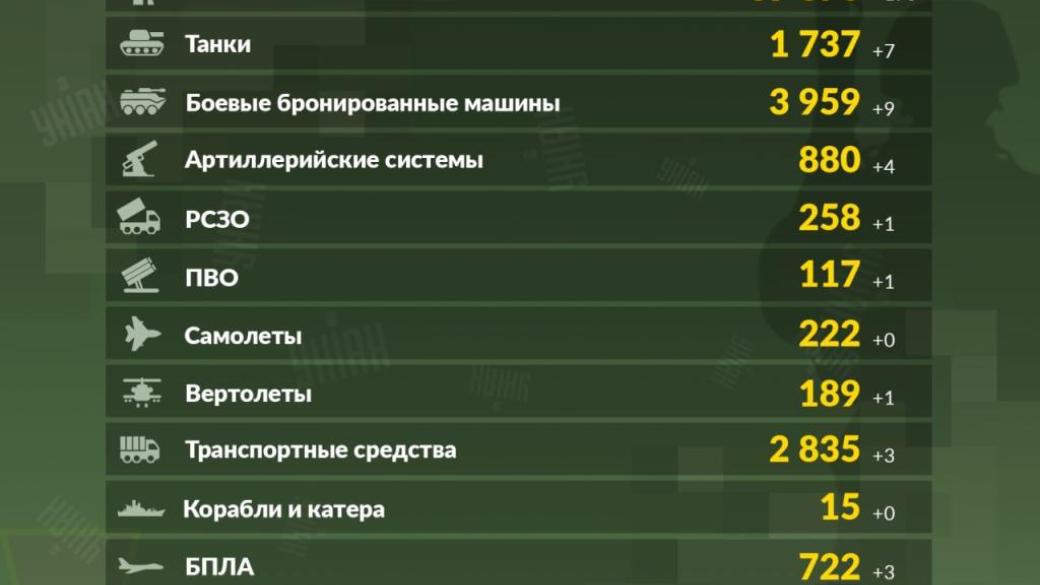- личного состава - около 39 870 (+170) человек ликвидировано;