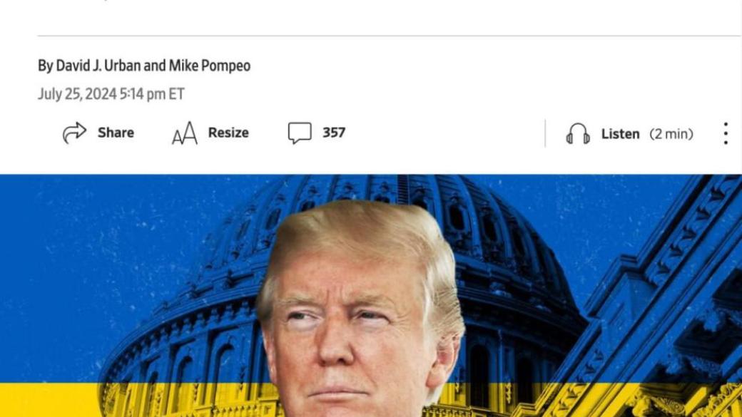 "Мирный план" Дональда Трампа в случае его победы на президентских выборах в США якобы предусматривает увеличение военной помощи Украине и ее членство в ЕС и НАТО. Об этом сообщил бывший государственный секретарь США Майк Помпео в колонке The Wall Street Journal.