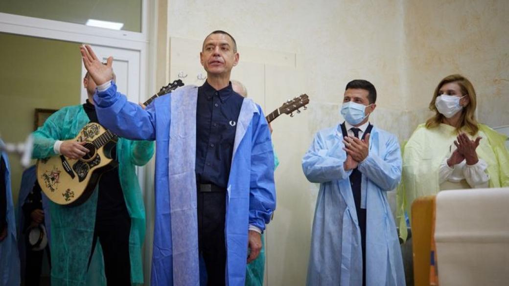 Владимир Зеленский, с супругой в компании Сергея Михалка и его группы «Ляпис 98» проведали в одном из госпиталей Киева раненых украинских военных. Музыканты поздравили защитников Украины, исполнили в палатах песню «Воины света» и читали стихи.