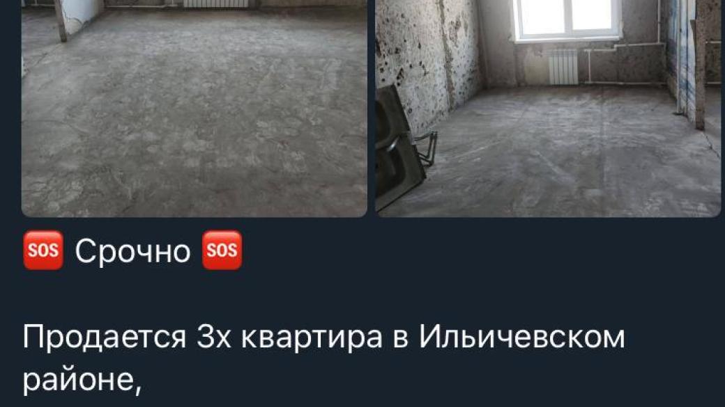 В тексте объявления указано, что 3-х комнатная квартира находится в Ильичевском районе города и состояние ее - под ремонт. Чиновник в комментарии к публикации уточнил:
