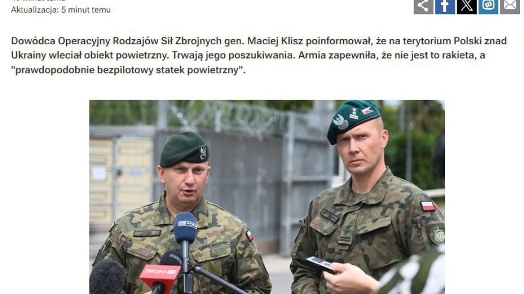 Известно, что объект исчез примерно через 25 км на польской территории в Люблинском воеводстве. Поиски продолжаются.