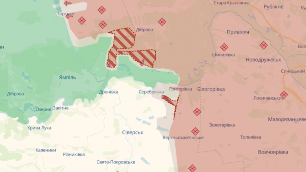 Он сообщает, что Северск фактически находится полуокружении, поскольку охвачен с двух сторон. Более того, в случае если противник из Серебрянского лесничества атакует Дроновку и захватит ее, то охват Северска будет уже с трех сторон.