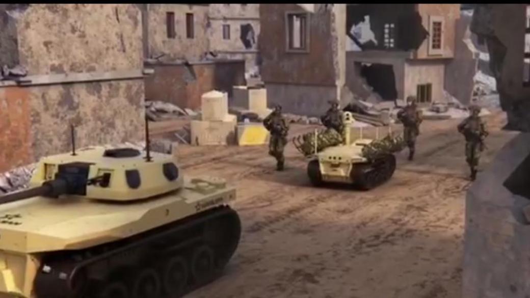 На предоставленном видео показано, как боевые дроны, корабли, подводные лодки и наземные боевые машины ведут согласованные военные действия и помогают пехоте на поле боя, при этом управление техникой осуществляется дистанционно, на большом расстоянии от эпицентра боя.