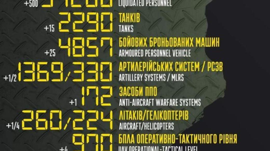 По данным командования, всего с начала войны в Украине Россия потеряла: