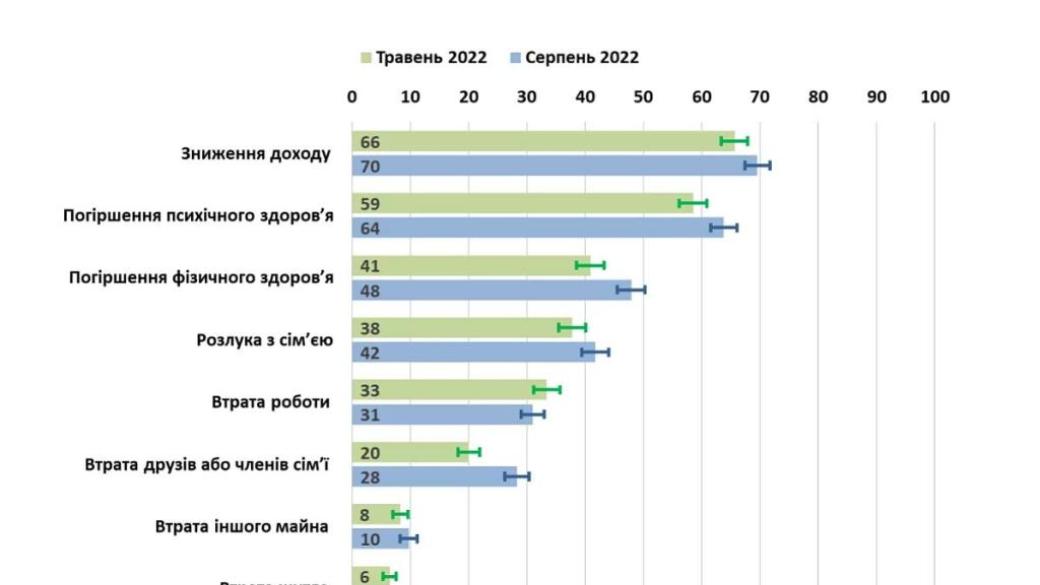 Работу потерял 31% наших сограждан. О потере жилья сообщает 9% респондентов. Кроме финансовых проблем украинцам пришлось столкнуться с ухудшением психического и физического здоровья, потерей друзей или членов семьи.