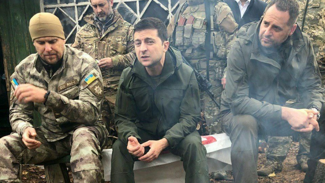 Президент Владимир Зеленский приехал на позиции украинских добровольцев в Золотое, на участке разведения сил. Об этом сообщает одна из Facebook-страниц Национального корпуса «Останній блок-пост # Ні_Капітуляціїї».