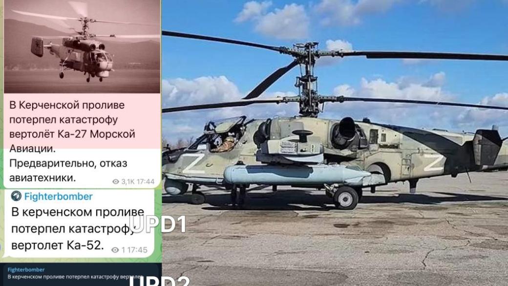 Россияне потеряли над Керченским проливом вертолёт Ка-52. Об этом пишут «Z-военкоры».