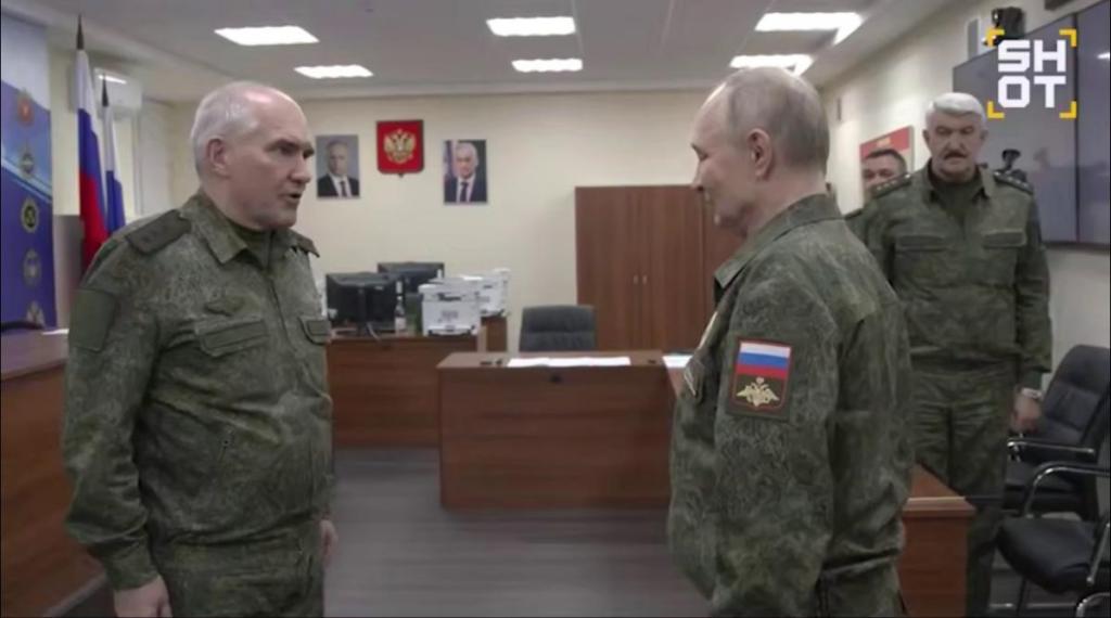 Российский диктатор Владимир Путин посетил один из пунктов управления российской армии и провел совещание о войне в Украине. На видео, опубликованном российскими тг-каналами, путин в военной форме встретился с главой Генштаба Валерием Герасимовым и другими командующими. Об этом пишет УНИАН.