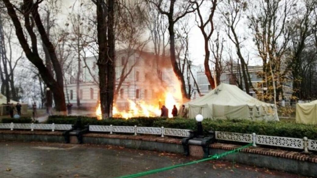В Киеве в Мариинском парке возле здания парламента у активисток сгорела одна из палаток.