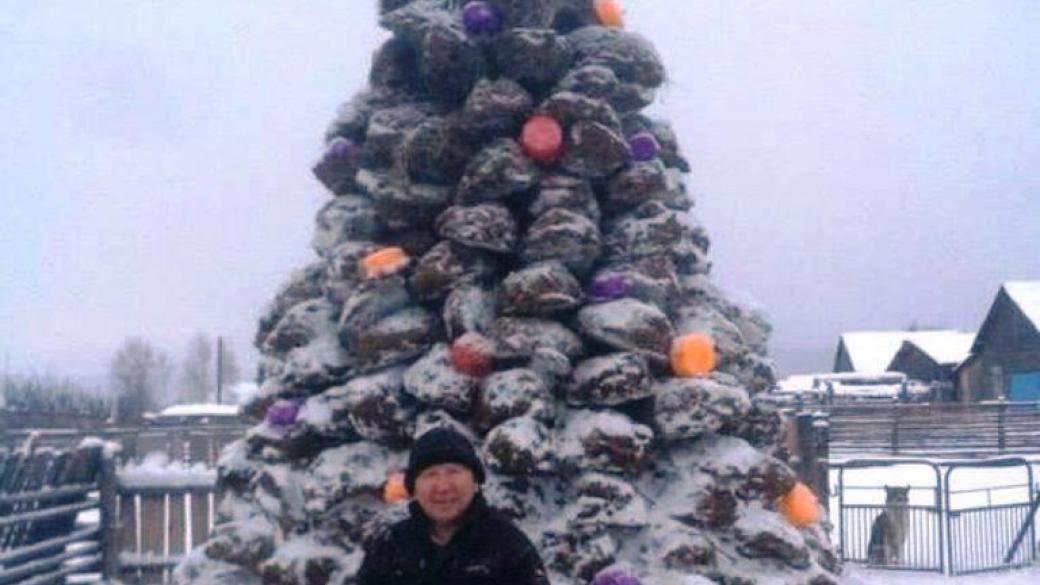 Житель села Нерюктяйинск Олекминского района Якутии установил «рекорд» слепив елку из навоза.
