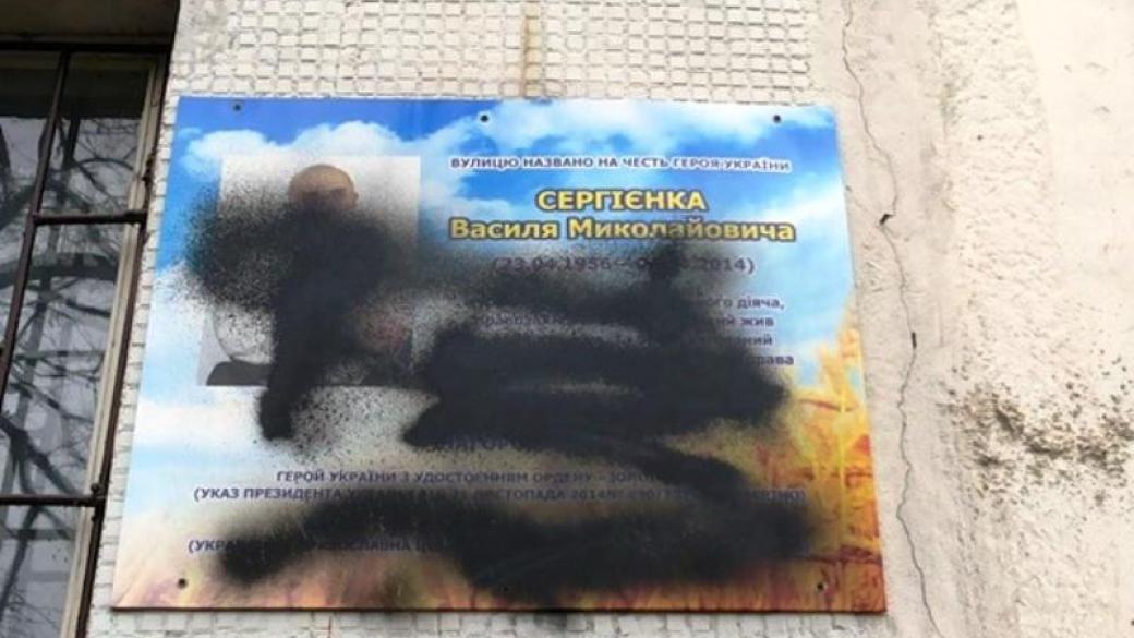 В Запорожье неизвестные закрасили черной краской мемориальную доску памяти Героя Небесной сотни Василия Сергиенко, которая была установлена на улице, названной его именем.