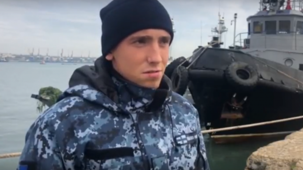 «Я, Драч Андрей, член экипажа судна „Никополь“ ВМС Украины. 23 числа получил задание следовать по маршруту „Одесса-Мариуполь“ через Керченский пролив. На пути следования в Мариуполь мы зашли в территориальные воды РФ, где нас предупреждала береговая охрана РФ, что мы нарушаем законодательство России. Неоднократно нам говорили, чтобы мы покинули территориальные воды России Во время остановки береговая охрана предупредила нас, что надо покинуть территориальные воды РФ и выйти за 12-мильную зону и ждать дальнейшие решения нашего прохождения через Керченский пролив до Мариуполя».