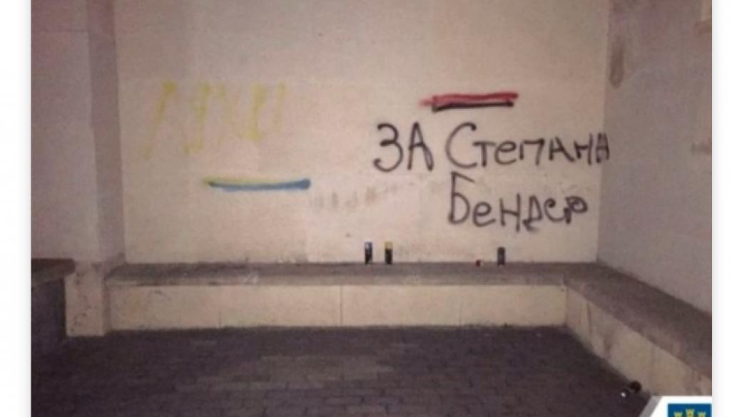 Сообщается, что мужчины 43−45 лет на каменной стене черной краской написали «за Степана Бендер» и сделали полоски — сине-желтые и красно-черные.