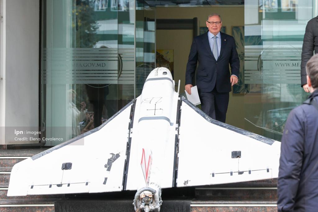 После того как дипломат вошел в здание, один из дронов, который был обнаружен в районе Флорешты, разместили перед министерством.