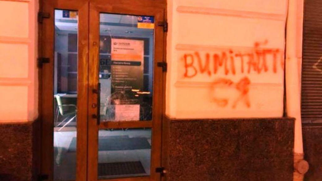 В отделении Сбербанка РФ во Львове сегодня ночью неизвестные разбили два окна и стекло в дверях.
