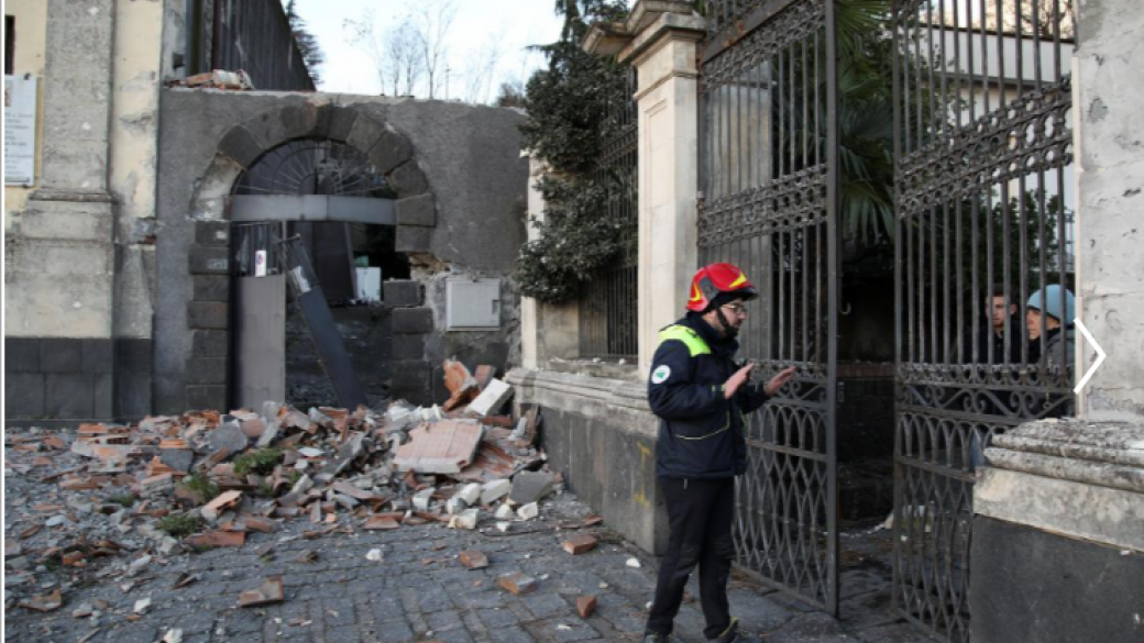 «Землетрясение магнитудой 4,8 произошло в области к северу от Катании на склонах горы Этна на Сицилии утром в среду, причинив ущерб зданиям и ранив около 30 человек».