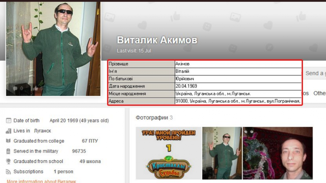 Погибший Акимов родился в Луганске 20/04/1969. По словам сослуживцев и близких погибшего участника НВФ он якобы погиб до 05/12/18 (дата и обстоятельства смерти требуют уточнения).