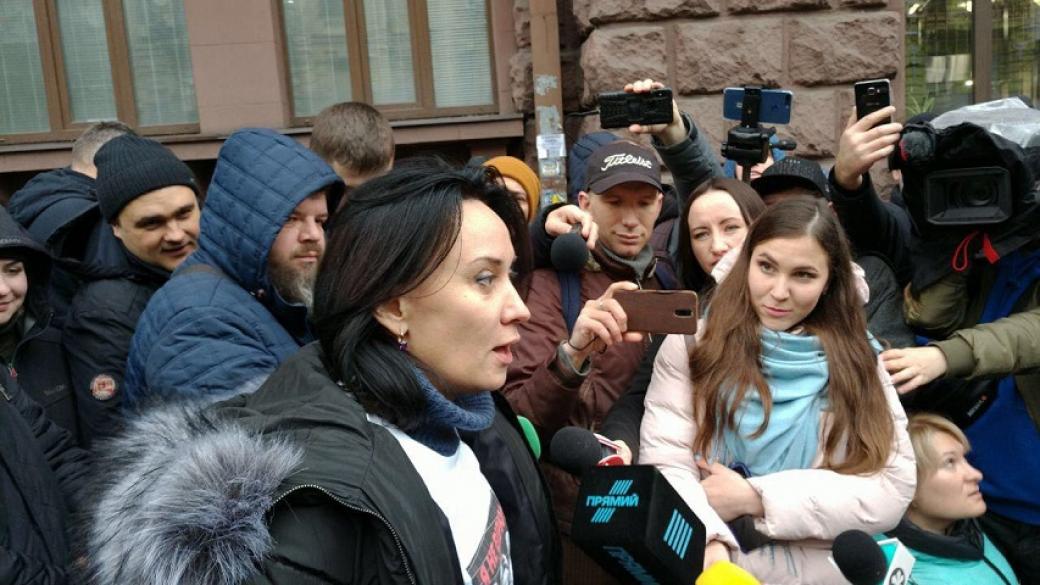 Маруся Звиробий, волонтер и активистка явилась сегодня на допрос в ГРБ по делу об угрозах убийством президенту Украины Владимиру Зеленскому и немного пообщалась с журналистами.