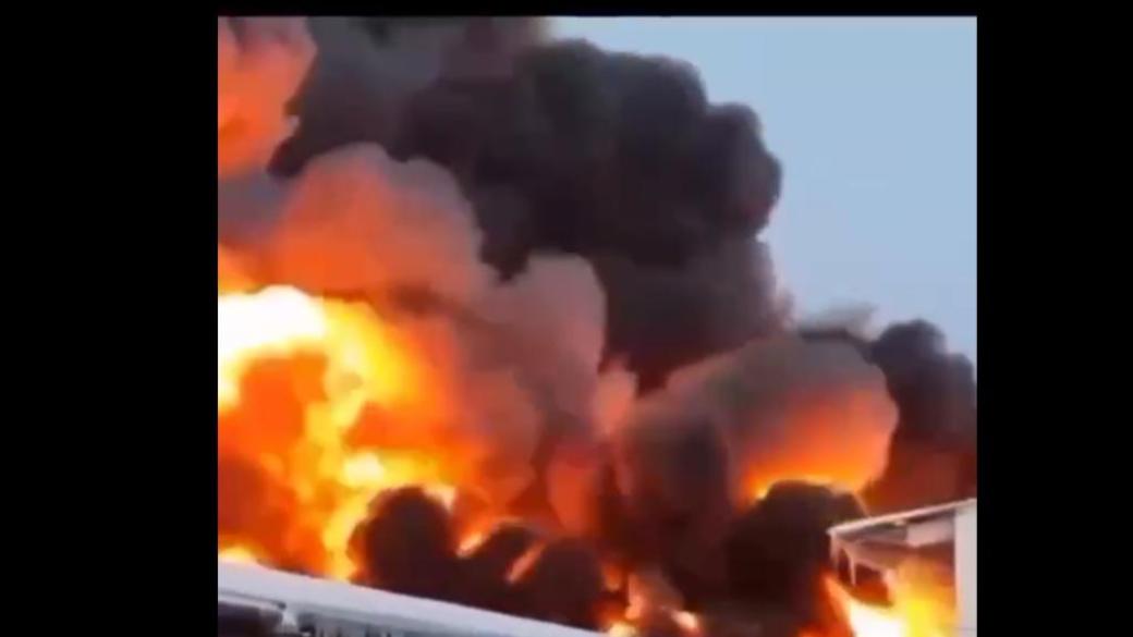 По данным пабликов, на складе сначала были какие-то взрывы, после чего поднялся дым и начался пожар. Подробности выясняются.