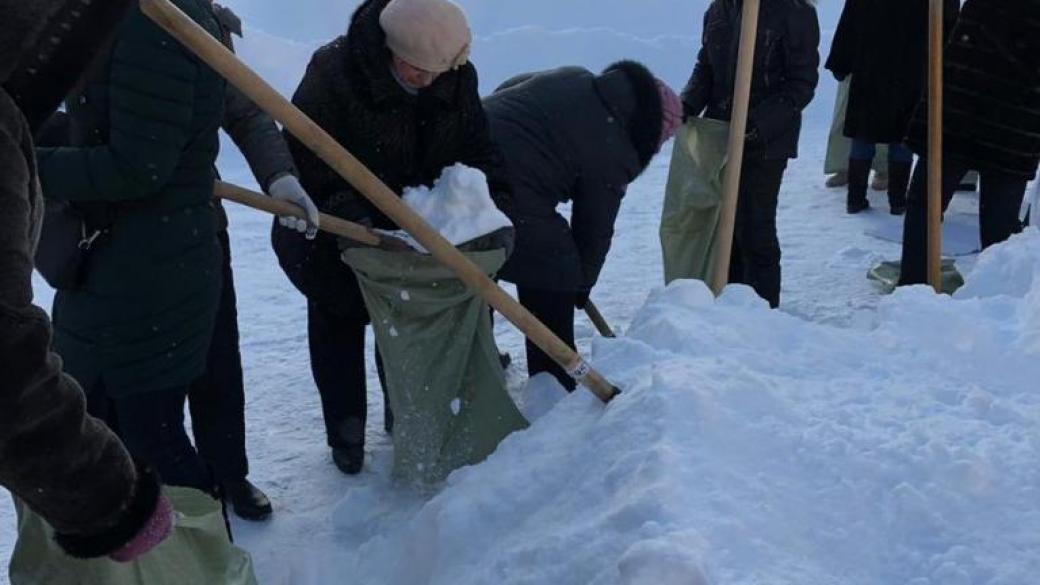 «Учителя тем временем на субботнике. И за что им это, в 21 веке, в 20-градусный мороз мешками и лопатами снег убирать?» — говорится в подписи к фото.