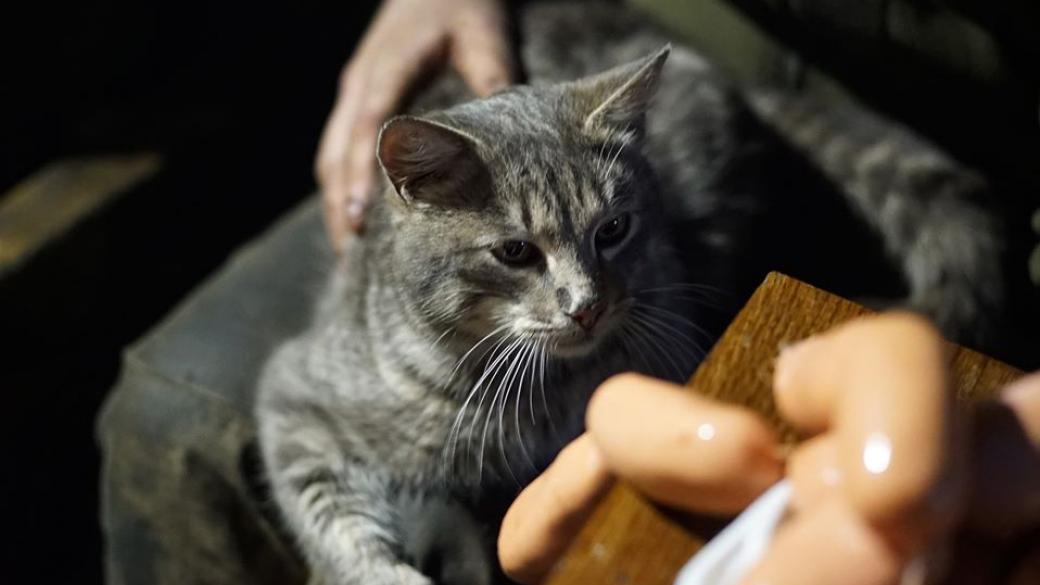«Бойцы передают Толика из рук в руки. Толик — кот, который достался военным по „наследству“ от бригады, которая стояла на этом направлении до них. Когда и как он тут появился, и какая на самом деле у него кличка, никто не знает. Кота Толика, который вальяжно заходит в блиндаж и усаживается посередине, просто любят. И он отвечает людям в камуфляже взаимностью. „Толик, это прилеты. А как ты хотел?“ — говорит один из бойцов, бросая на пол возле кота кусок сардельки. И в блиндаже поднимается хохот».